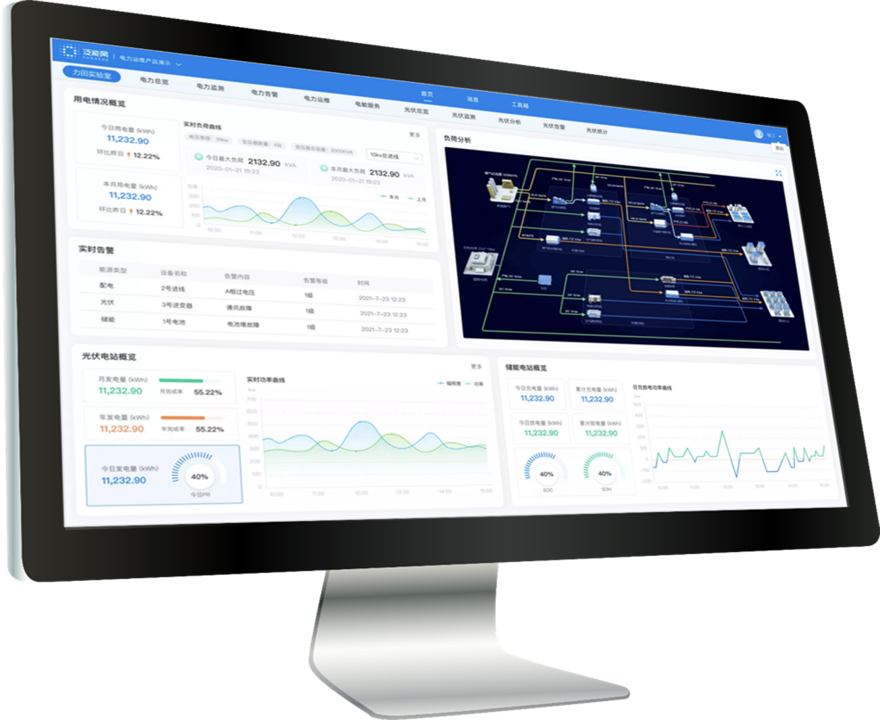力田科技为用户提供一套集分布式光伏、储能、充电桩一体平台系统。光伏系统充分利用光照资源发电,降低用电成本